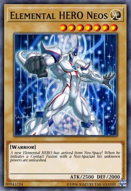 ”A new Elemental HERO has arrived from Neo-Space! When he initiates a Contact Fusion with a Neo-Spacian his unknown powers are unleashed.”